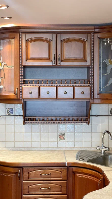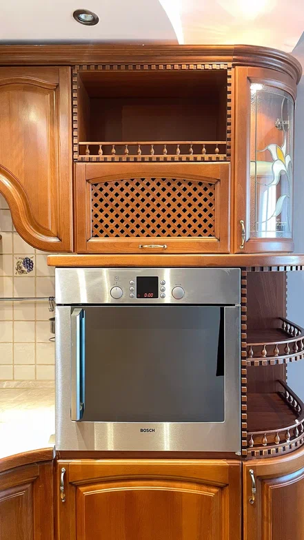 - Кухонный гарнитур из массива со встроенной бытовой техникой Bosch